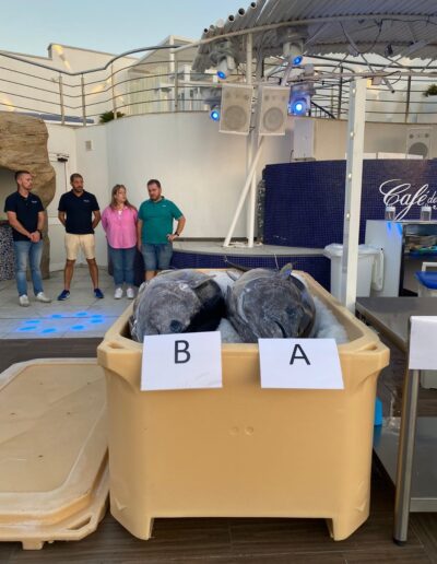 Dare to blind test tuna event: October 22, 2023; Café del Mar, Triq it-Trunciera, Malta An event was organized by MFF in which several government officials, Japanese tuna buyers and other guest attended. Only MFF owner, Salvu Elul knew that samples labeled as “A” were formula